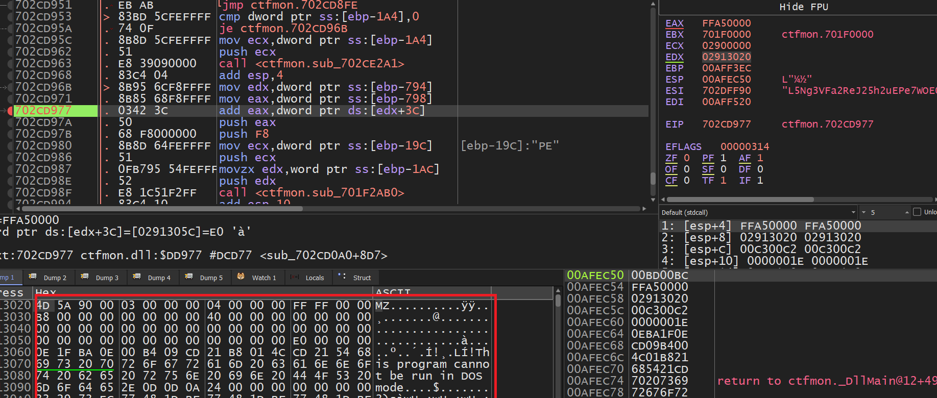 Again , we have PE parsing function in unpacked ctfmon.dll so now redtailed is another PE file