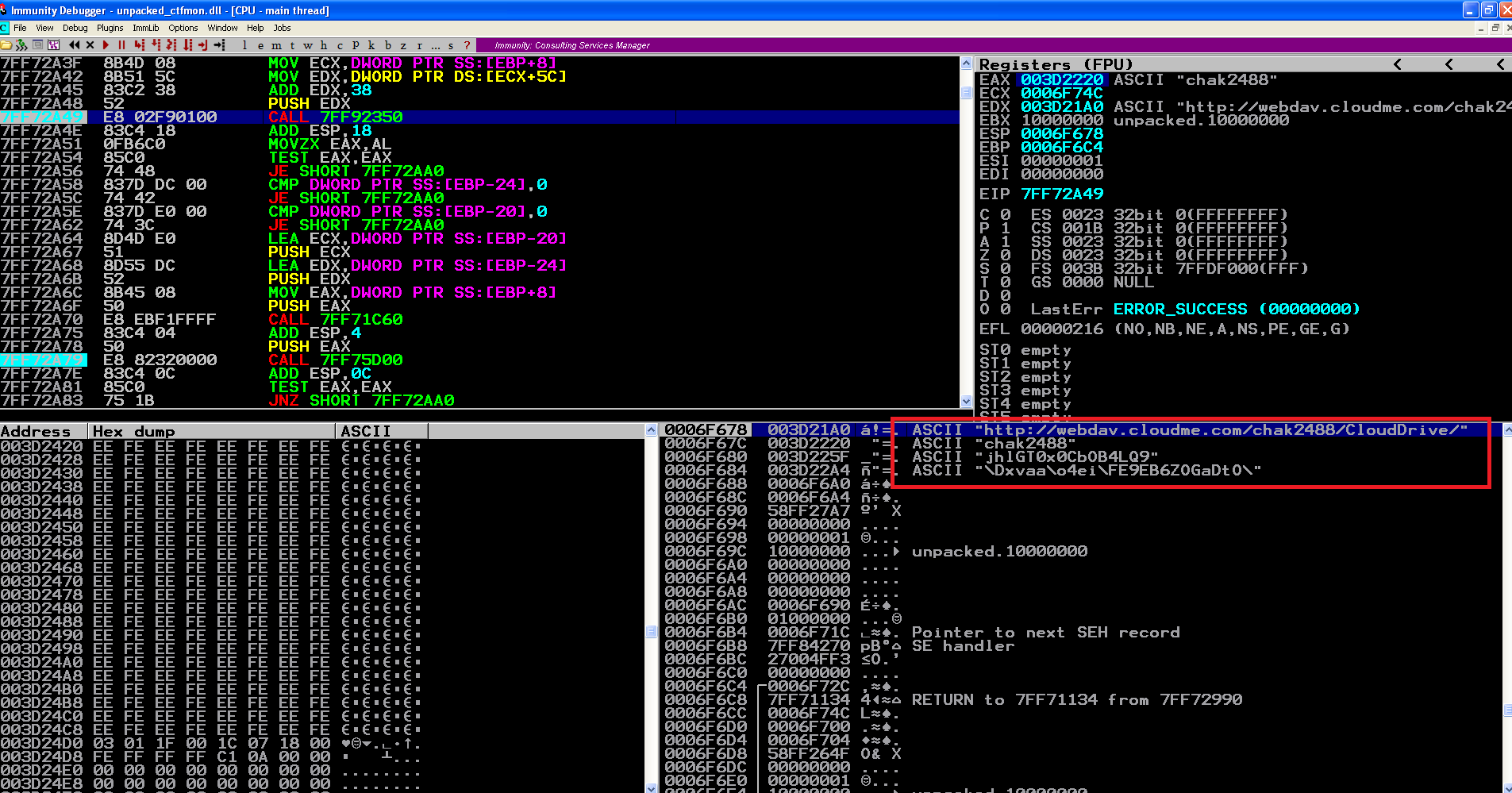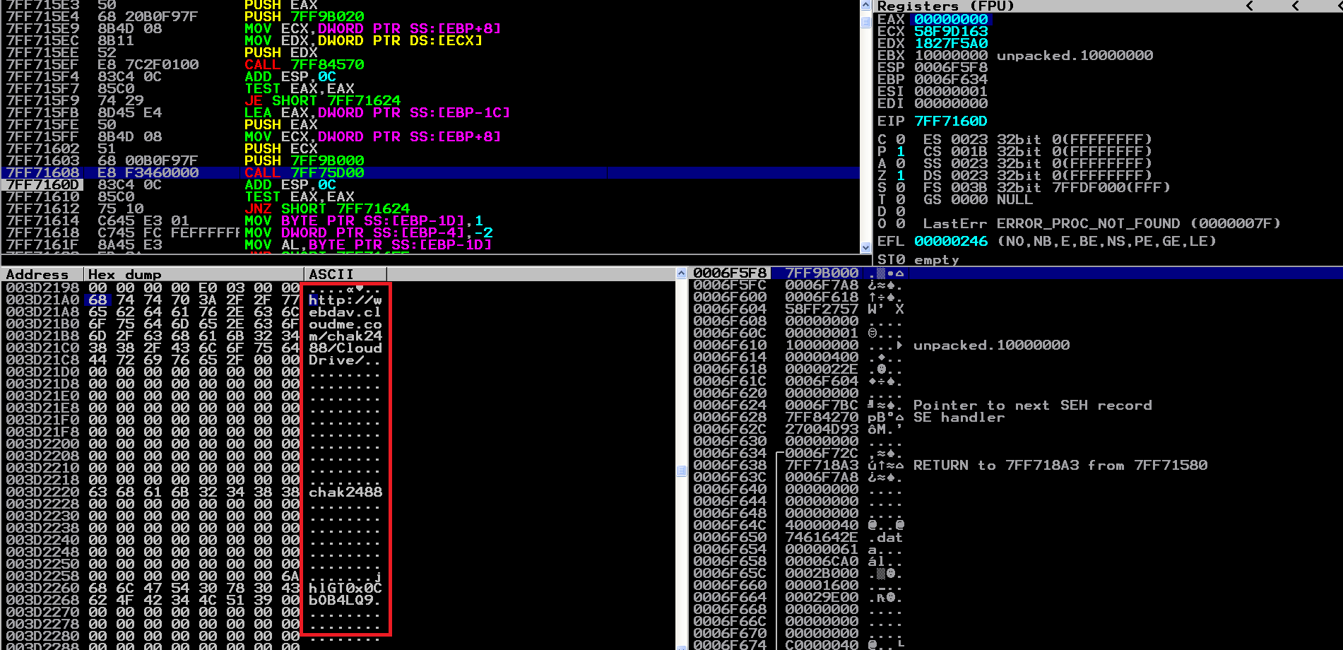 Here we go , we have now the C2 server and its credentials . to make sure about it I continued the debugging till to explore what it wants from server.